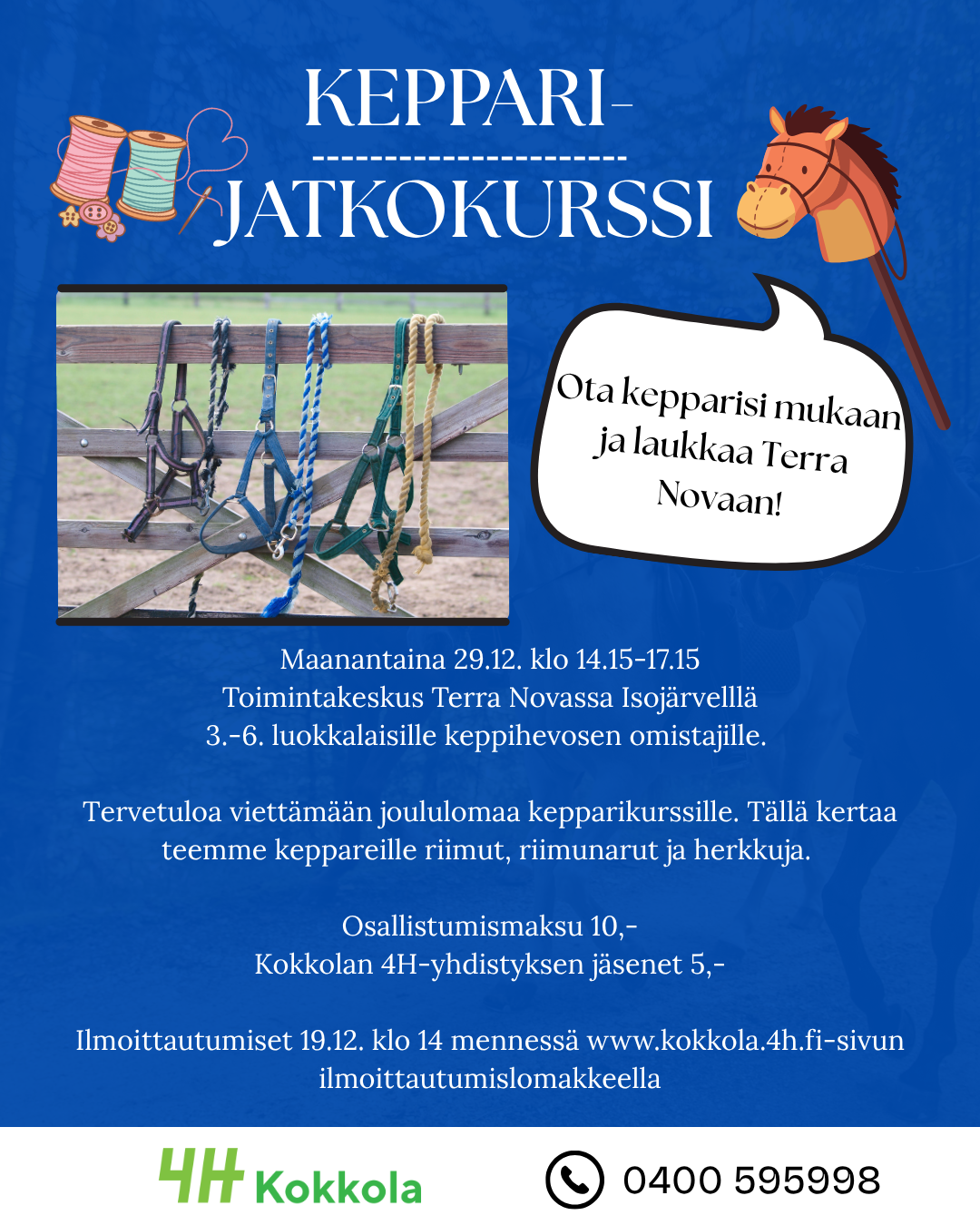 Noudata ilmoittautumisaikoja, sillä ilmoittautumisajan jälkeen, jos mukaan mahtuu, maksu on 20% kalliimpi. Viime hetken peruutukset ja kyselyt paikoista puhelimitse/viestillä. Tärkeää!Lähetämme vahvistukset lauantain kursseille torstaina kaikille yhteisviestillä, kesäkerhoon kerran viikossa, yleensä maanantaina. Kun ilmoittautuminen on auki, siinä on myös tilaa linkki sulkeutuu , kun tapahtuma on täynnä tai ilmoittautuminen on päättynyt. | |