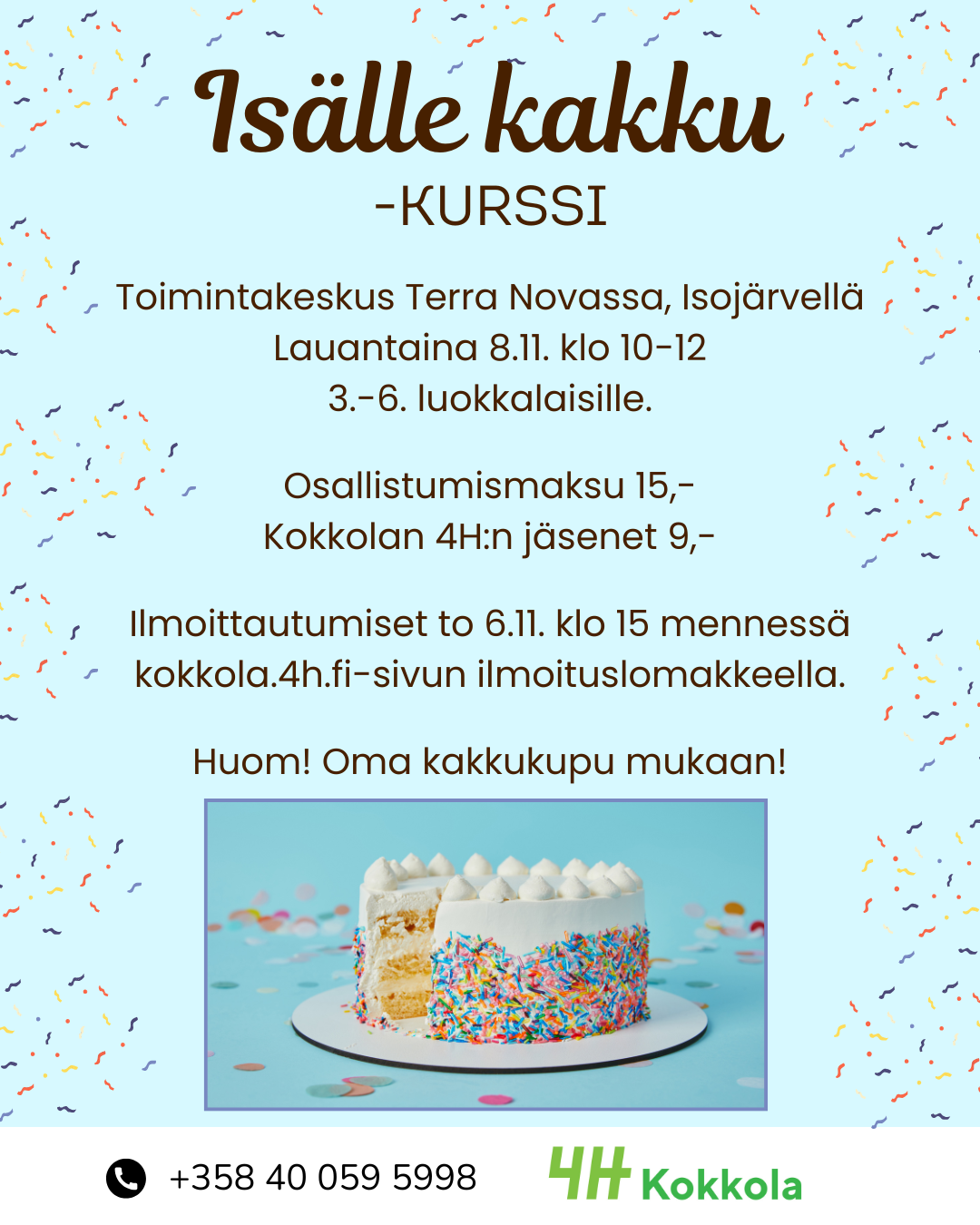 Äidille kakkukurssi la 10.5.205 Marinkaisissa