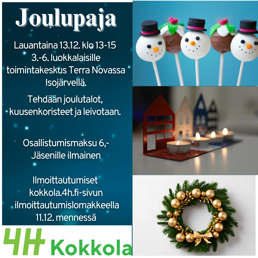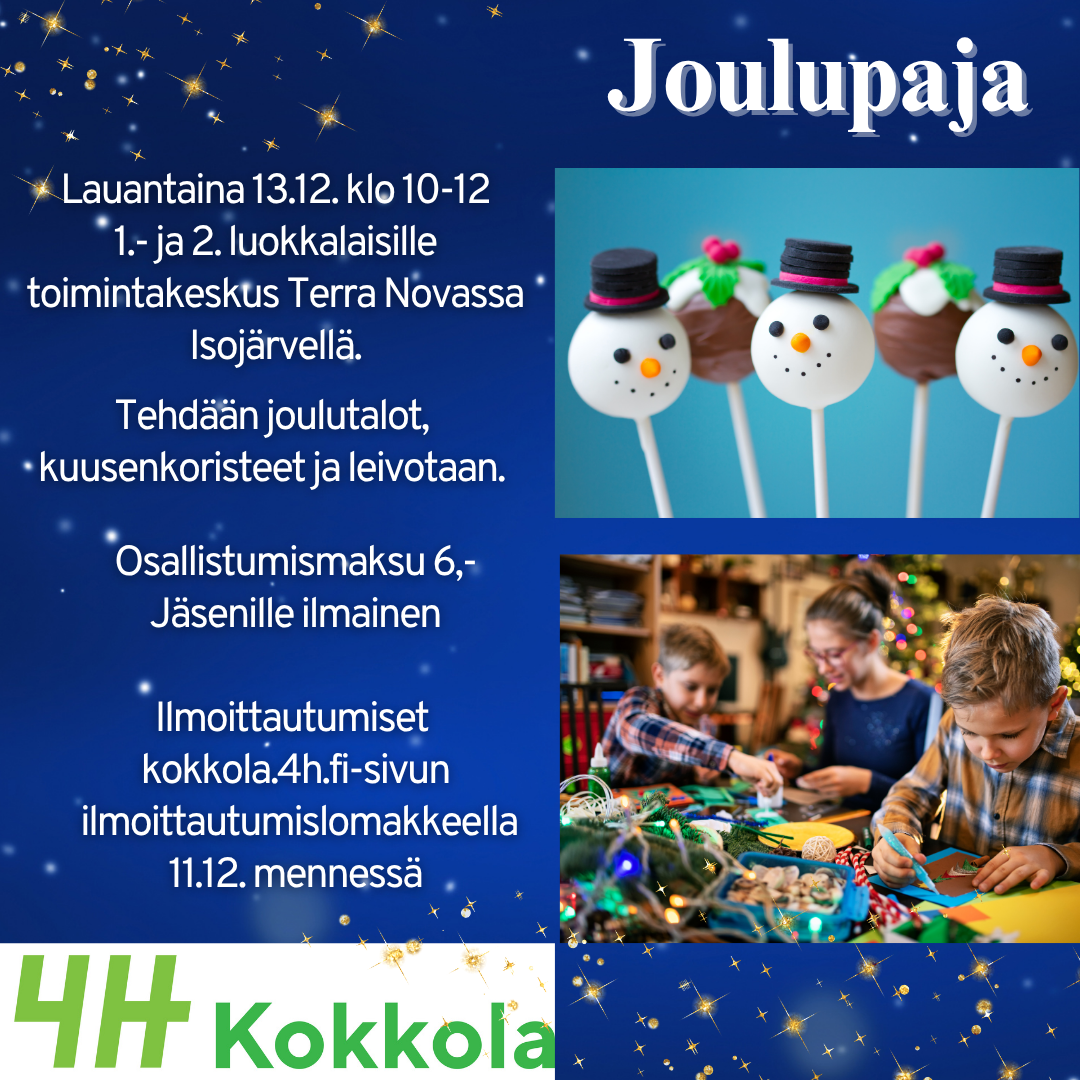1.-2. luokkalaisten joulupajat Isojärvellä la 13.12. klo10-12